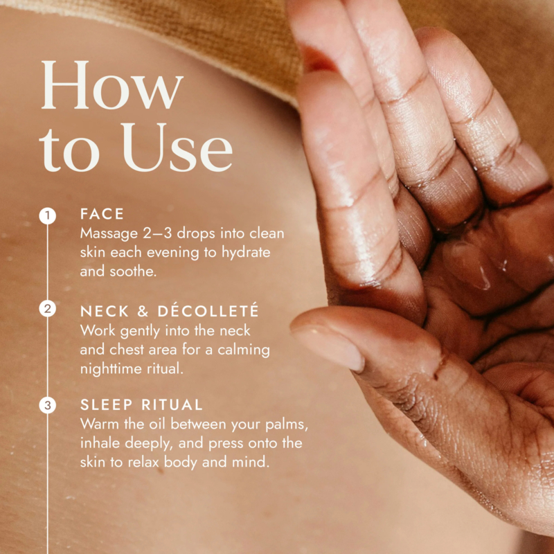 Masseer dagelijks 2-3 druppels in op een schone huid. Hydrateert, herstelt en ondersteunt een natuurlijke glans. Voor een diepere ontspanning kunt u de gezichtsmassage versterken met een Kansa Wand om spanning te verlichten en de bloedsomloop te verbeteren.